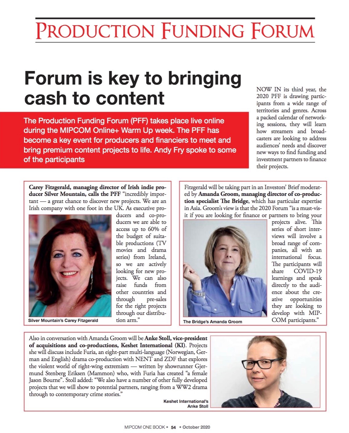 What an interesting article from the MIPCOM preview magazine on the Production Funding Forum!